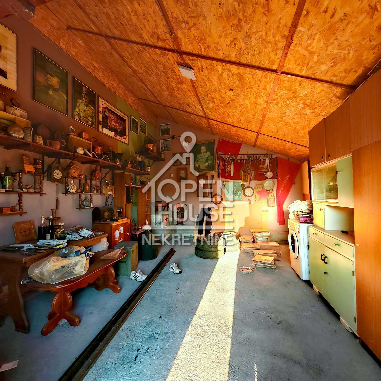 U dvorištu se nalazi radionica sa kanalom (uknjiženo na 21 m2), ostava za alat i garaža, a konfiguracija terena, odnosno blagi nagib placa pruža privatnost i lep pogled