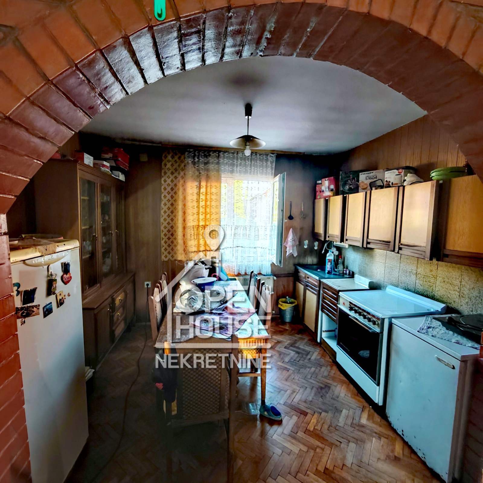 Ovoj kući punoj potencijala potrebno je renoviranje da zasija punim sjajem, a sastoji se od ulaznog hodnika, dnevne sobe lučnim prolazom povezane sa kuhinjom, spavaće sobe i kupatila u prizemlju, dok se na nivou ispod nalazi još dve prostorije i velika natkrivena terasa
