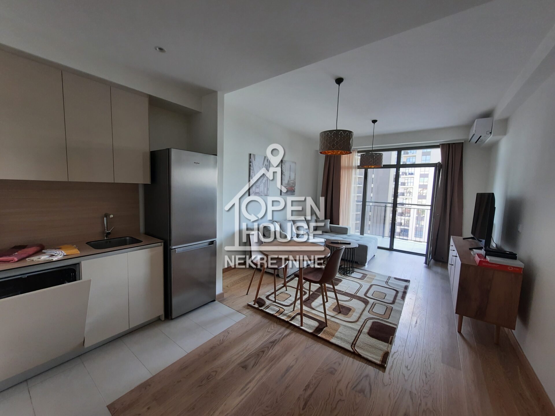 Struktura stana : ulazni hodnik, prostrana open-space dnevna soba sa kuhinjom i trpezarijom, kupatilo, spavaća soba,vešernica i terasa
